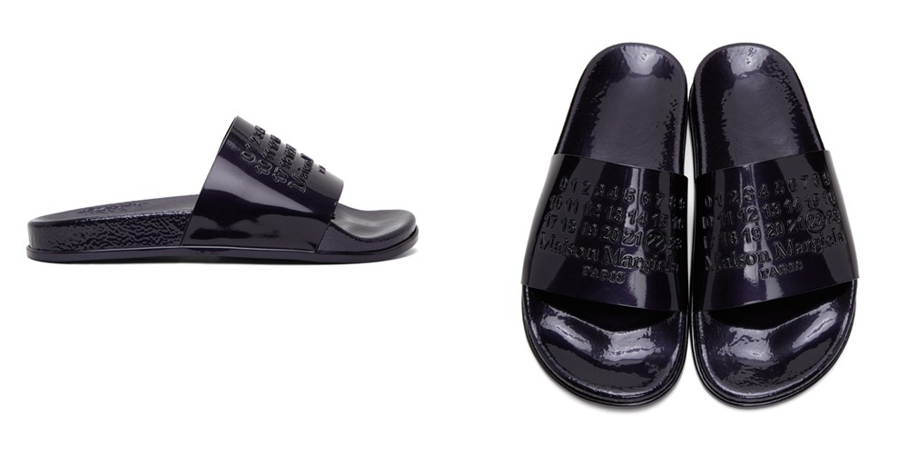 由英国设计师John Galliano设计的标志拖鞋,使用海军蓝配色为主调,并配合浮雕手法在鞋面放上Maison Margiela的经典标志,以强调其品牌身分。目前可于SSENSE购得,定价为美金680元。