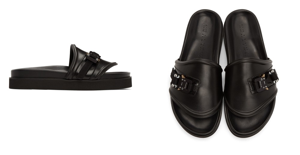 此款拖鞋采用抛光皮革为材质,并在鞋面附上品牌标志性的Rollercoaster Buckle扣环元素,使得鞋面可自由做调整,如此简单却又不失质感的设计,正是品牌设计师Matthew M Williams的经典设计!目前可于SSENSE购得,定价为美金750元。