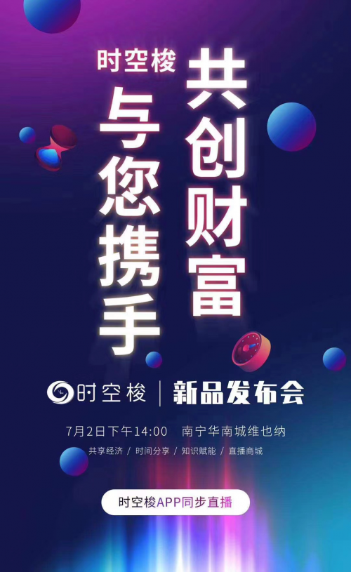 为此,在7月2日下午2:00,时空梭将举办一场具有时代意义的新品发布会,以“商业进化论”为主题,在南宁华城维也纳酒店开启,届时,时空梭APP将同步直播!
