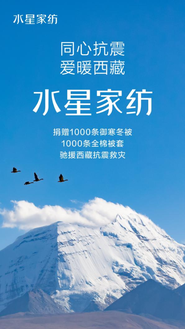 温暖援藏 情暖灾区丨水星家纺捐赠御寒冬被驰援西藏抗震救灾