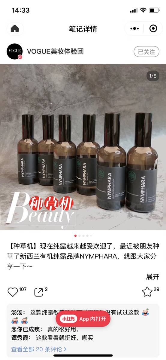 不只是我们,小编发现VOGUE美妆团、明星化妆师、一些明星也都有种草这款纯露,央视也有播出。