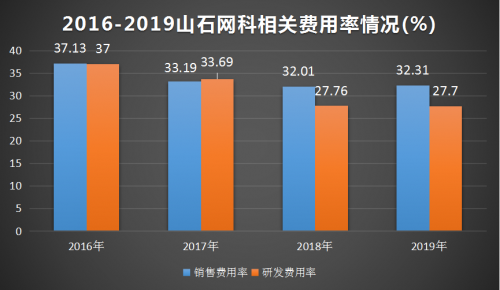 而2019年,山石网科的研发费用率和销售费用率分别为27.7%、32.31%,另两家网络安全行业上市公司启明星辰、绿盟科技的研发费用率分别为19.1%、23.12%,销售费用率分别为22.56%、35.67%,与之对比,山石网科的研发费用率和销售费用率尚存在较大的下降空间。