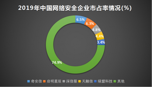 相关数据显示,由于网络安全产业产品种类繁多,行业集中度较低,2019年我国前五大网络安全企业的市占率仅有25%,可以得出,网络安全行业是个壁垒较高但极其分散的行业,很难出现垄断性巨头。