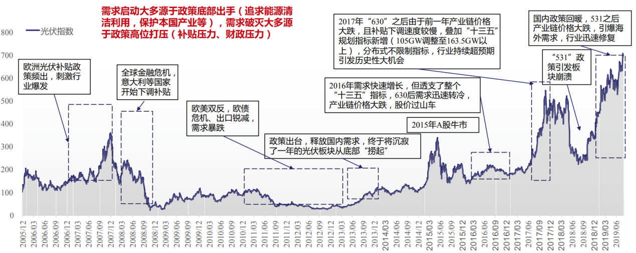 图 光伏行业大发展的周期都来自量的拉动