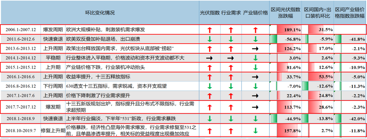 2)2018年的531新政后,国内光伏行业需求暴跌,量价齐跌导致行业景气度跌至冰点。但海外需求开始大增,年底国内政策预期修复,行业在年底迎来修复机会。