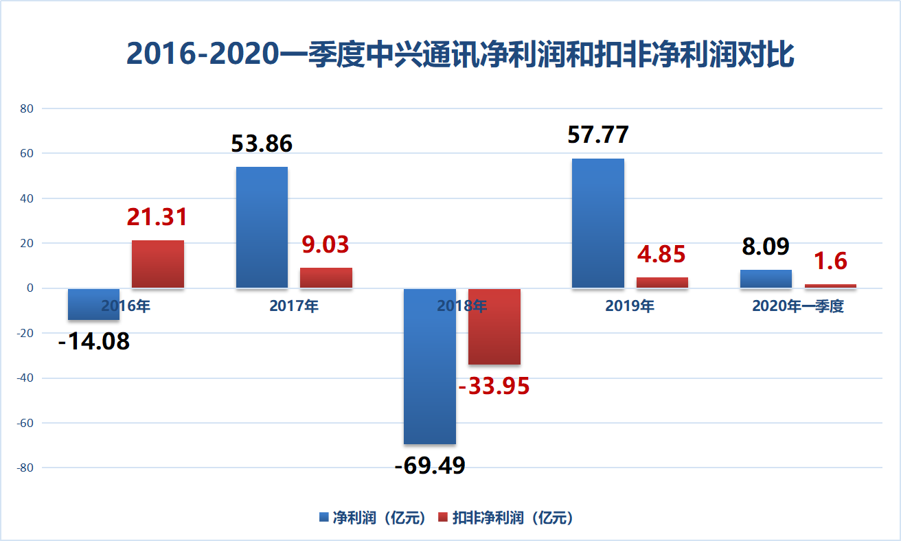 这主要受美国商务部罚款所致,2016年中兴通讯计提了8.92亿美元相关损失,2018年公司又赔款支出68.19亿元,导致净利润大幅减少。