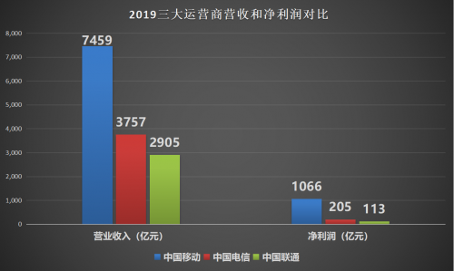 中国联通是国内三大电信服务商之一,中国的三大运营商相信大家都不陌生,分别为中国移动、中国电信、中国联通。在三大运营商中,中国联通排名最后,而且与前两者具有很大差距。2019年三大运营商的营业收入分别为7459亿元、3757亿元、2905亿元;净利润分别为1066亿元、205亿元、113亿元。中国联通的营业收入是中国移动的40%,净利润只占中国移动的10%。