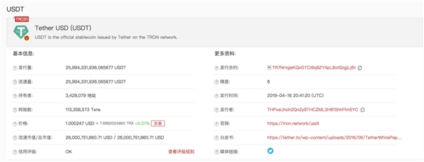 目前,TRC20-USDT流通量已突破259亿枚,独立地址数已突破342万。