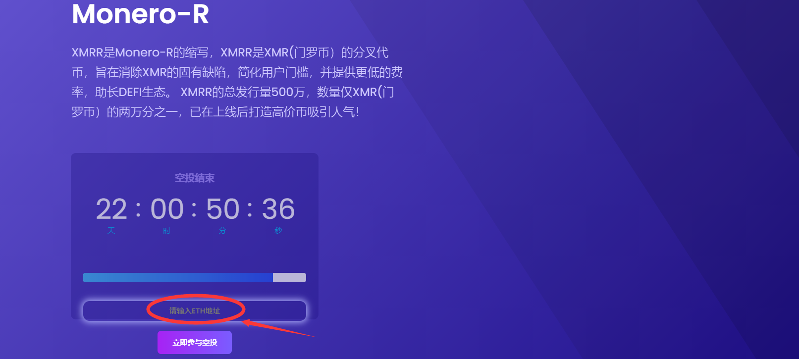 空投结束后将自动发放XMRR代币至您提交的ETH地址