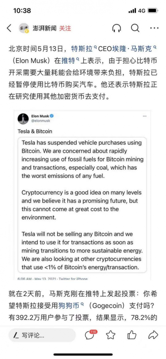 并且马斯克已经取消了和比特币支付(指出“比特币消耗电力过高,打算用一种新型的加密货币进行支付”)