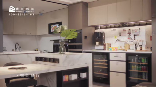 睿住智选智慧餐厅根据家人的用餐生活动线,精心布局,不仅营造出愉悦的用餐氛围,更集成了多种功能需求。这里不仅是美食的聚集地,更是家人的能量补给站。恒温红酒柜、智能吊柜等智能设备,满足了全家人对美食、美酒及各类物品的储存需求,让餐厅成为家中的“补给大师”。