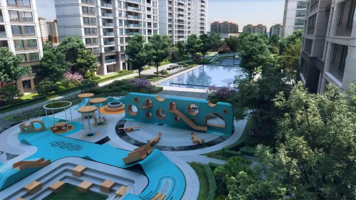 而6大景观院,名字就足够诗情画意,即“云起、个映、坐饮、暗香、照心、拈花”,几乎几乎每两幢合院之间就有一个景观院,可以作为父母小孩跟邻里互动提供了场所。