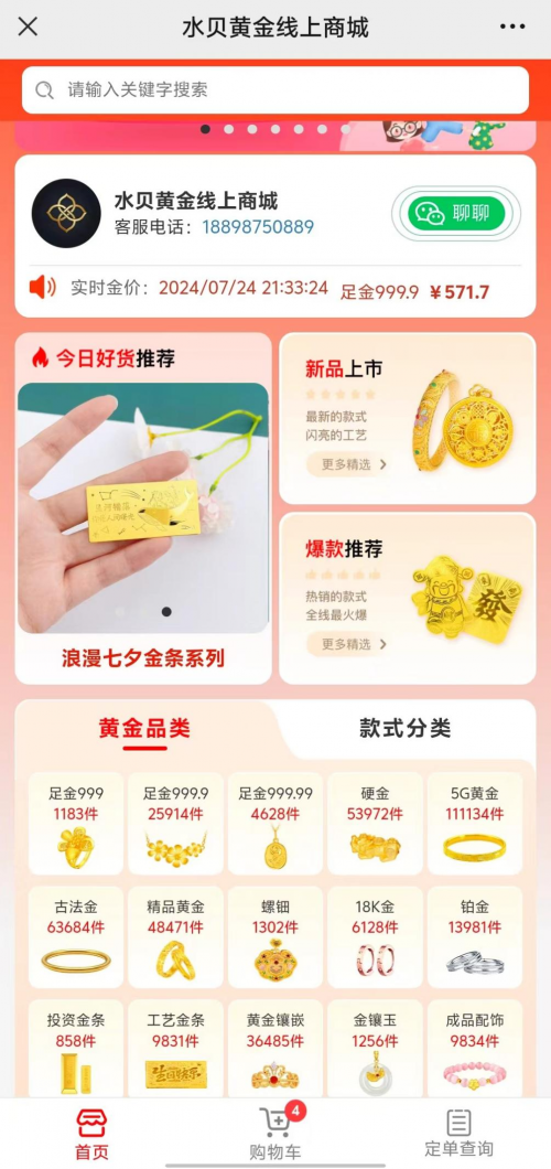 小编经过介绍联系上了一家水贝黄金的线上商城负责人,目前以公众号:巨福黄金 作为商城导入口,然后进入商城首页后,居然高达6000个现货品类,几乎涵盖了深圳水贝的大部分热门款式,可谓应有尽有!